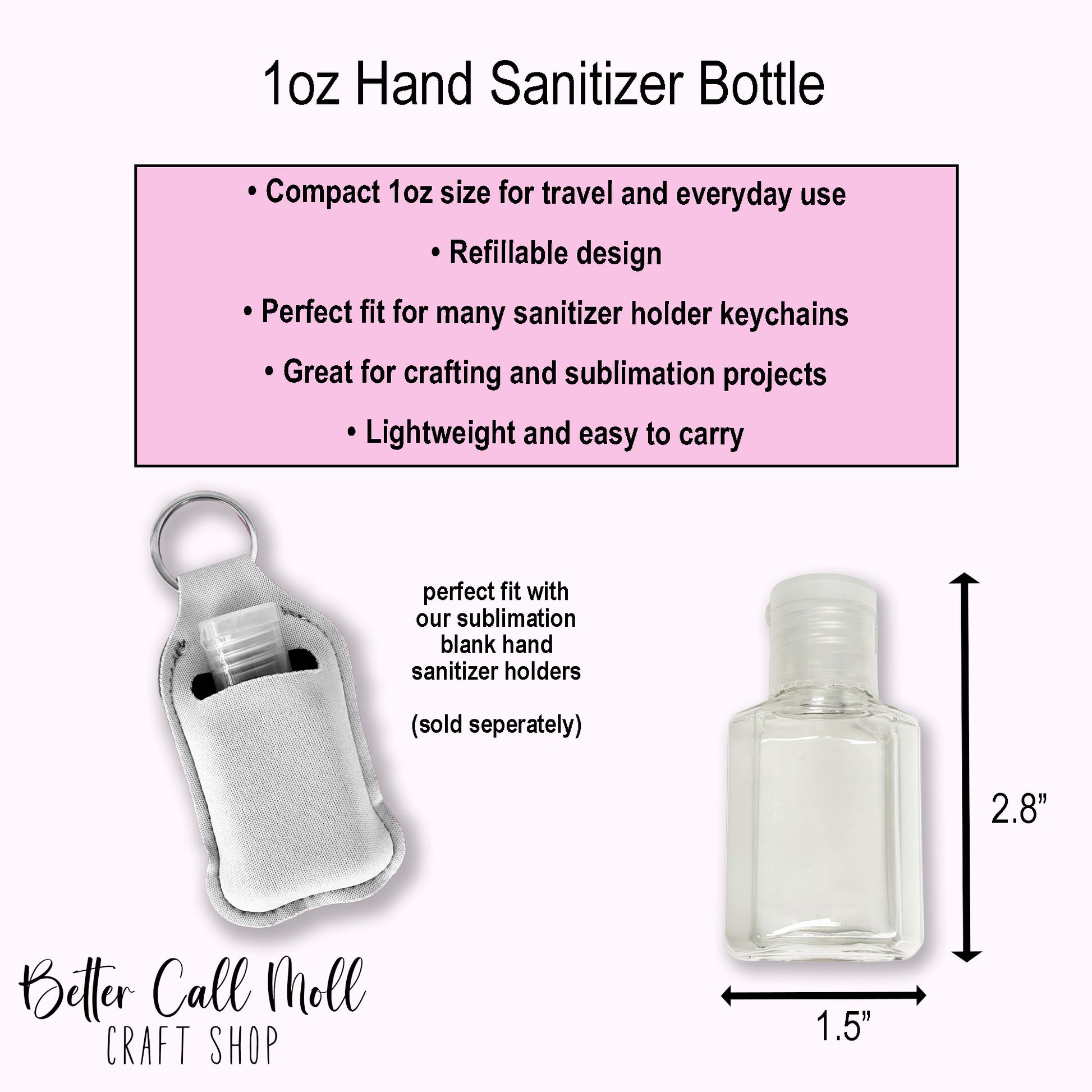 This 1oz hand sanitizer bottle is a compact and convenient container for carrying sanitizer wherever you go. Its small size makes it perfect for travel, bags, purses, backpacks, and keychain holders.
