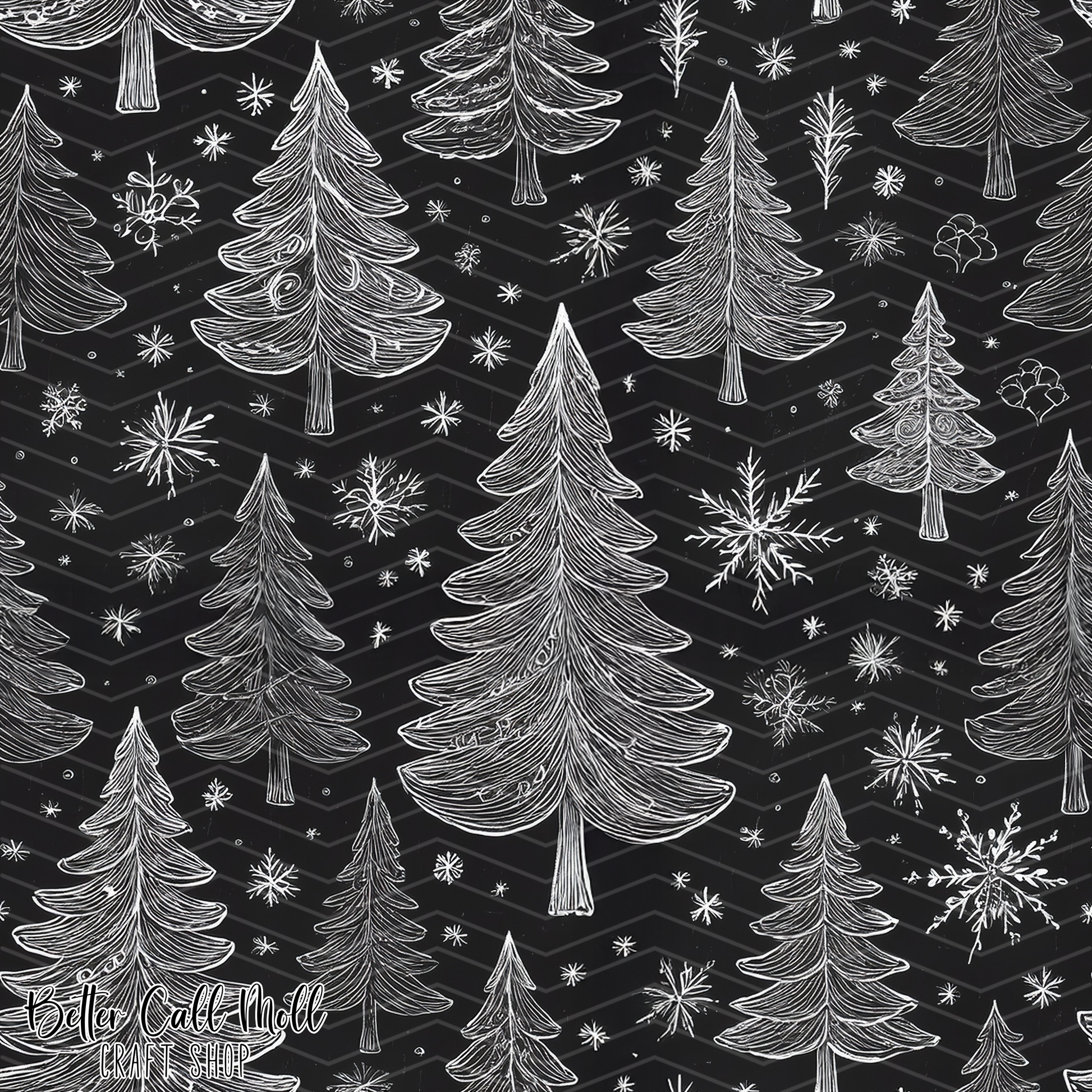 Chalkboard Christmas Trees Digital Seamless Pattern