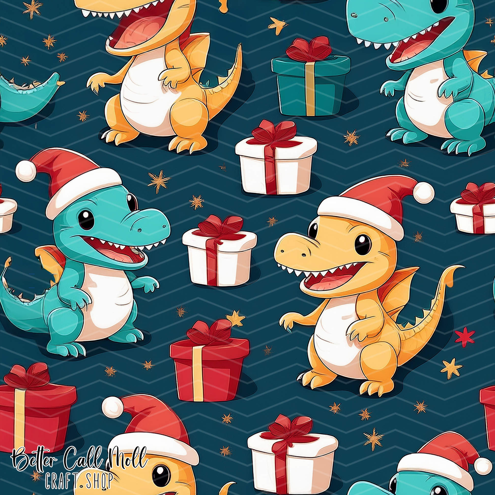 Christmas Dinos 2 Digital Seamless Pattern