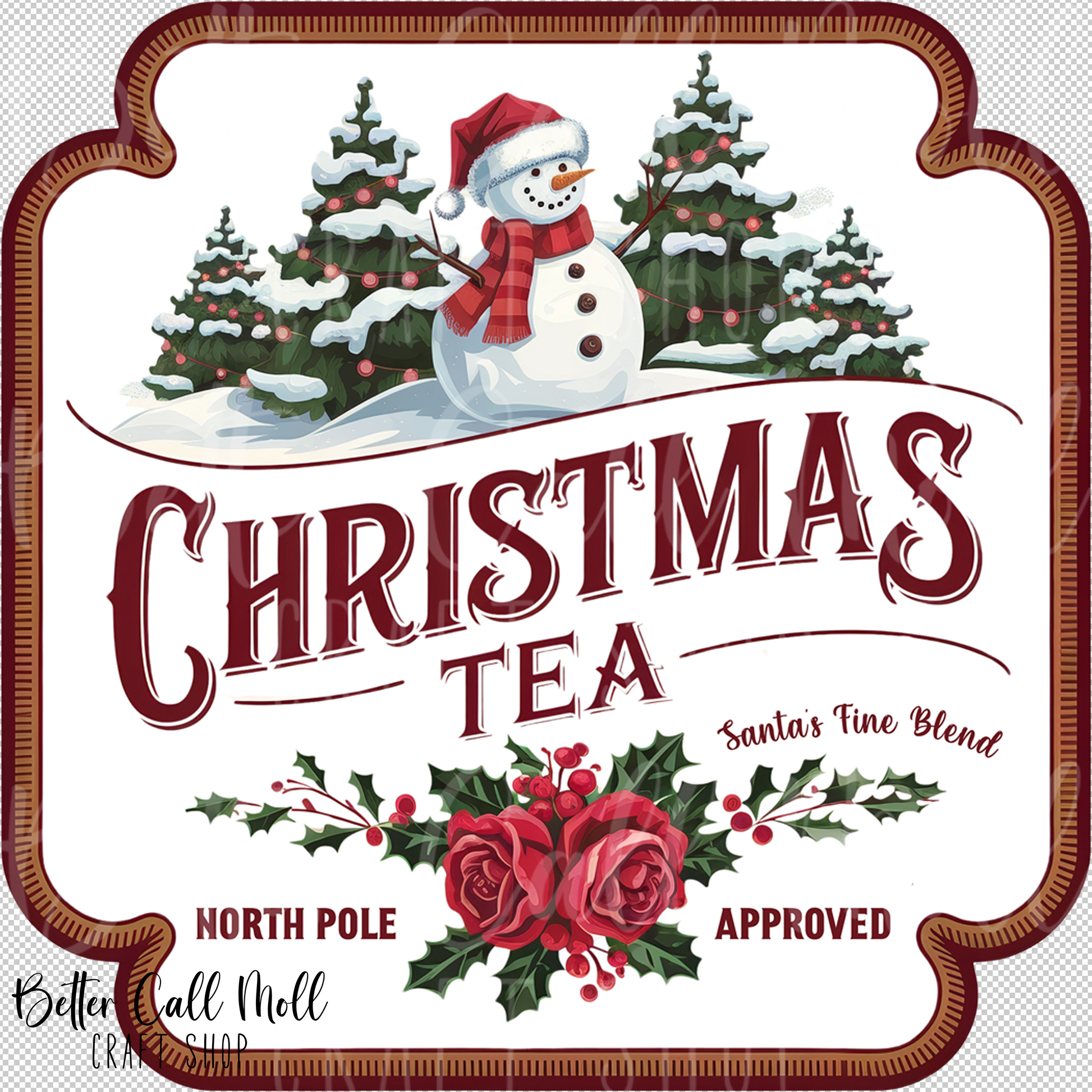 Christmas Tea Label UV DTF Decal