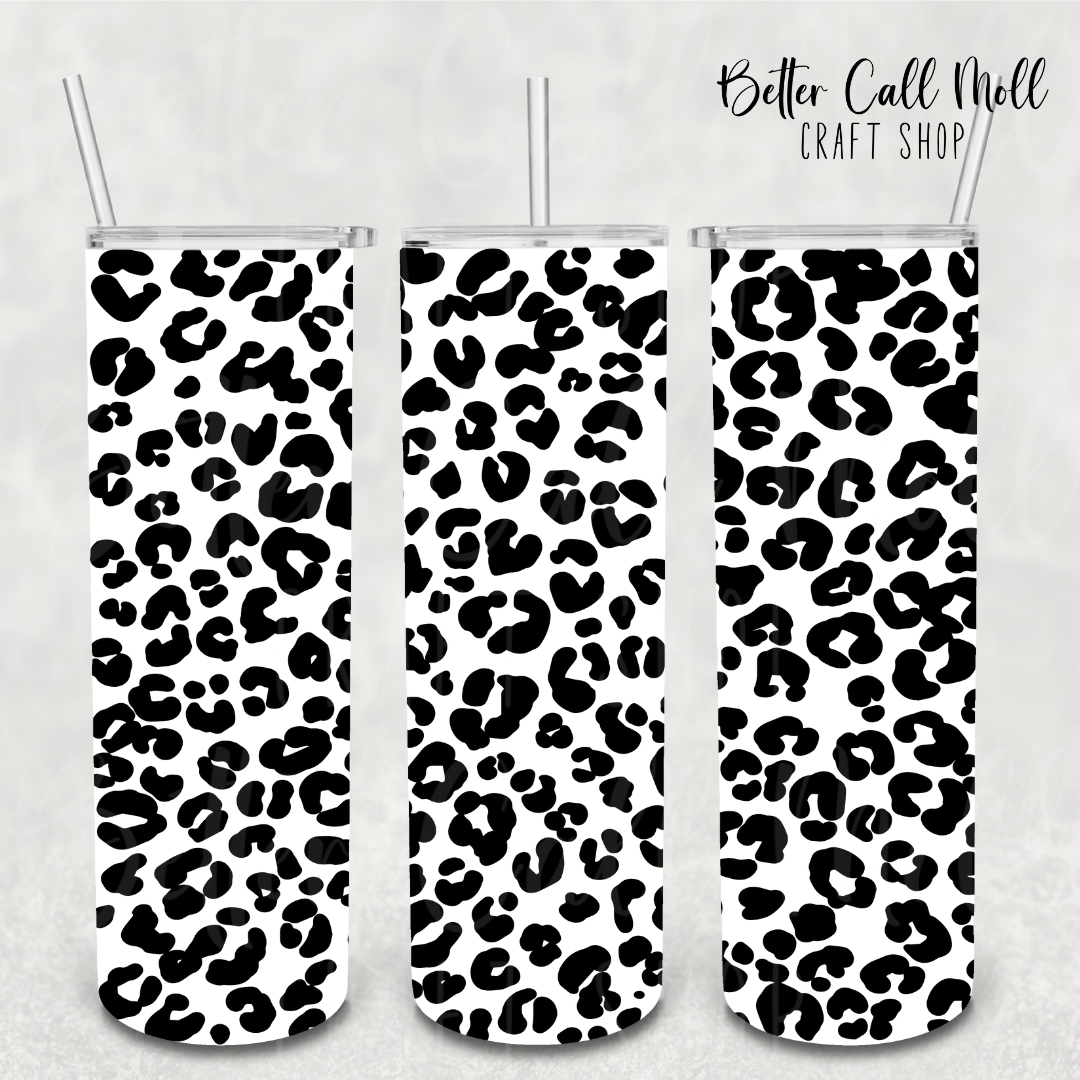 Black Leopard Print UV DTF 20oz Skinny Tumbler Wrap