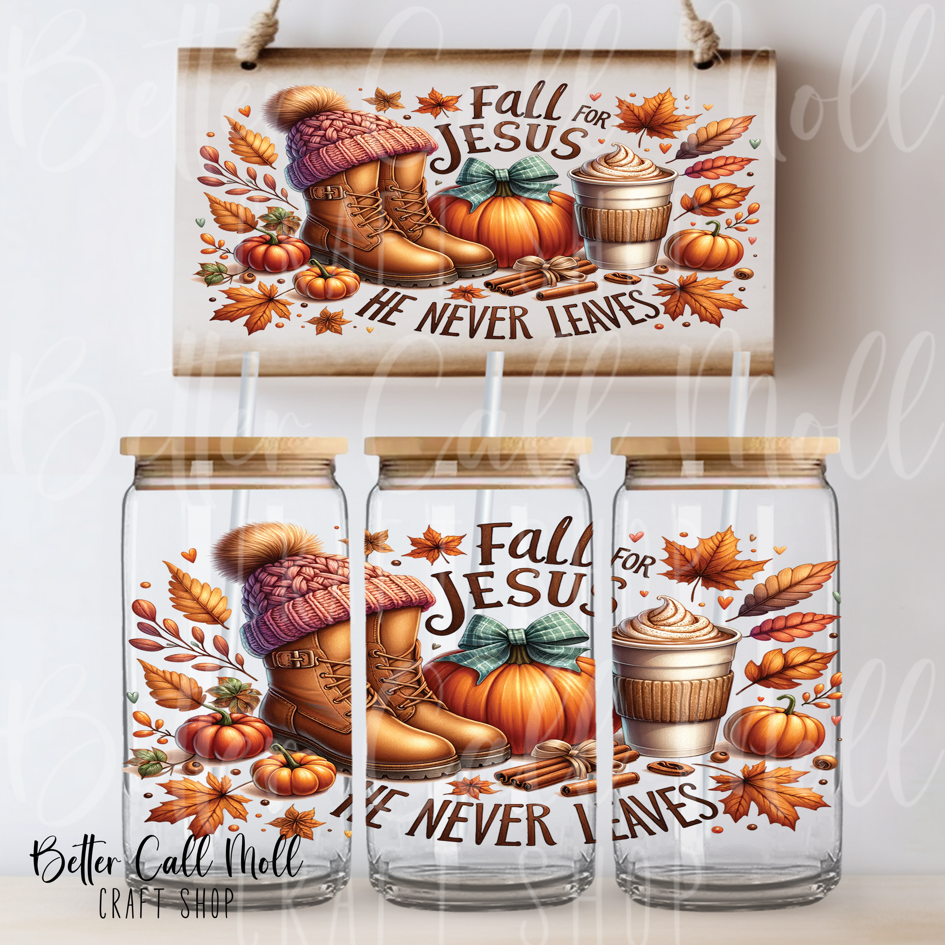 Fall For Jesus He Never Leaves UV DTF 16oz Tumbler Wrap