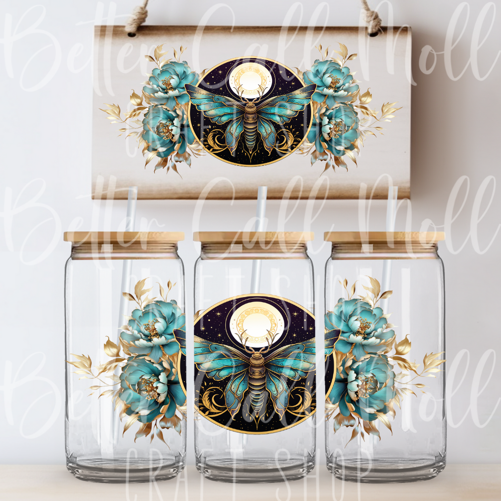 W049 - Floral Lunar Moth UV DTF 16oz Tumbler Wrap