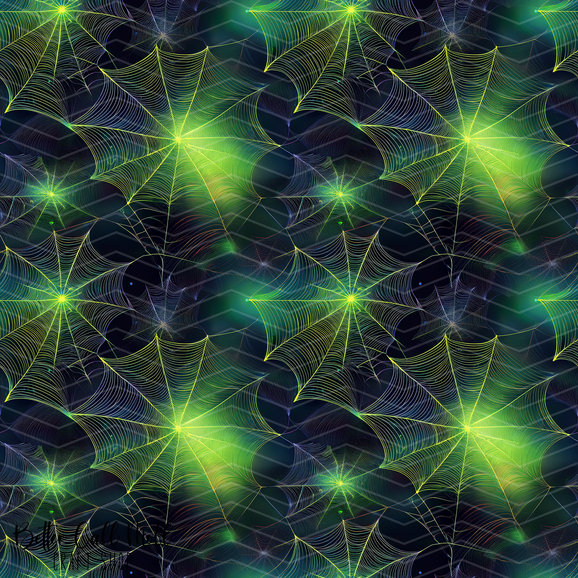Green Spiderwebs Digital Seamless Pattern