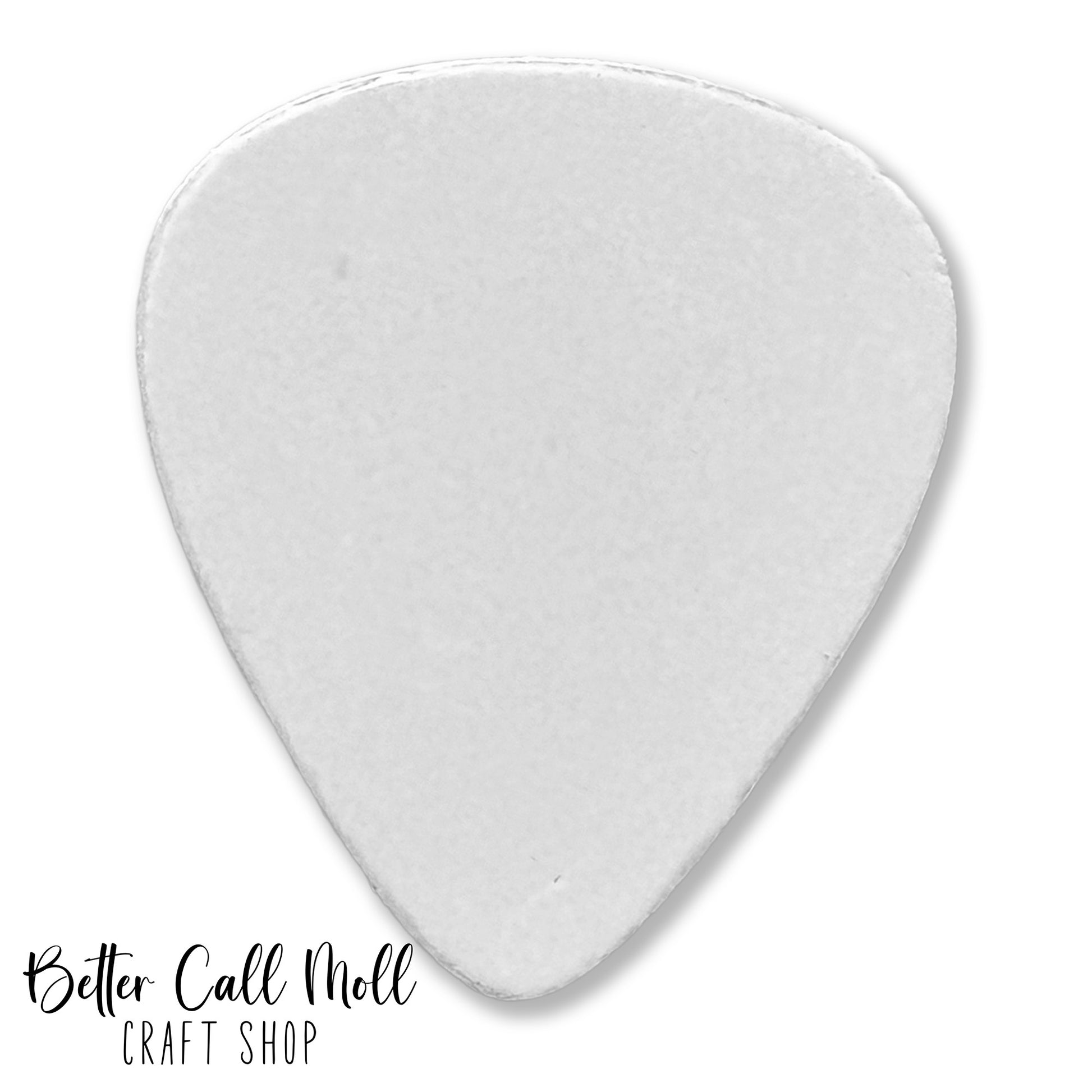 🎸 Create the perfect personalized keepsake! These Guitar Pick Double-Sided Metal Sublimation Blanks are a fun, easy project for gifts, memorial keepsakes, band merch, and small business inventory. Each pick is metal, glossy, and sublimation-ready on BOTH sides for vibrant, long-lasting prints.