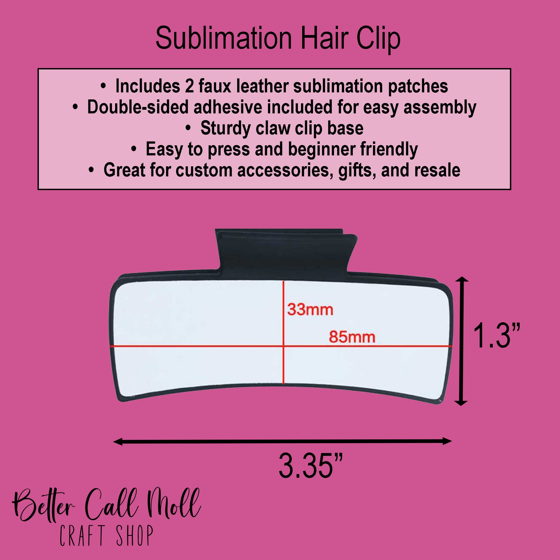 Create stylish, custom hair accessories with this hair clip sublimation blank. Each clip includes two faux leather sublimation patches and double-sided adhesive, making it easy to press vibrant designs and assemble a finished clip in minutes. Perfect for boutique items, gifts, kids’ accessories, and small business products.