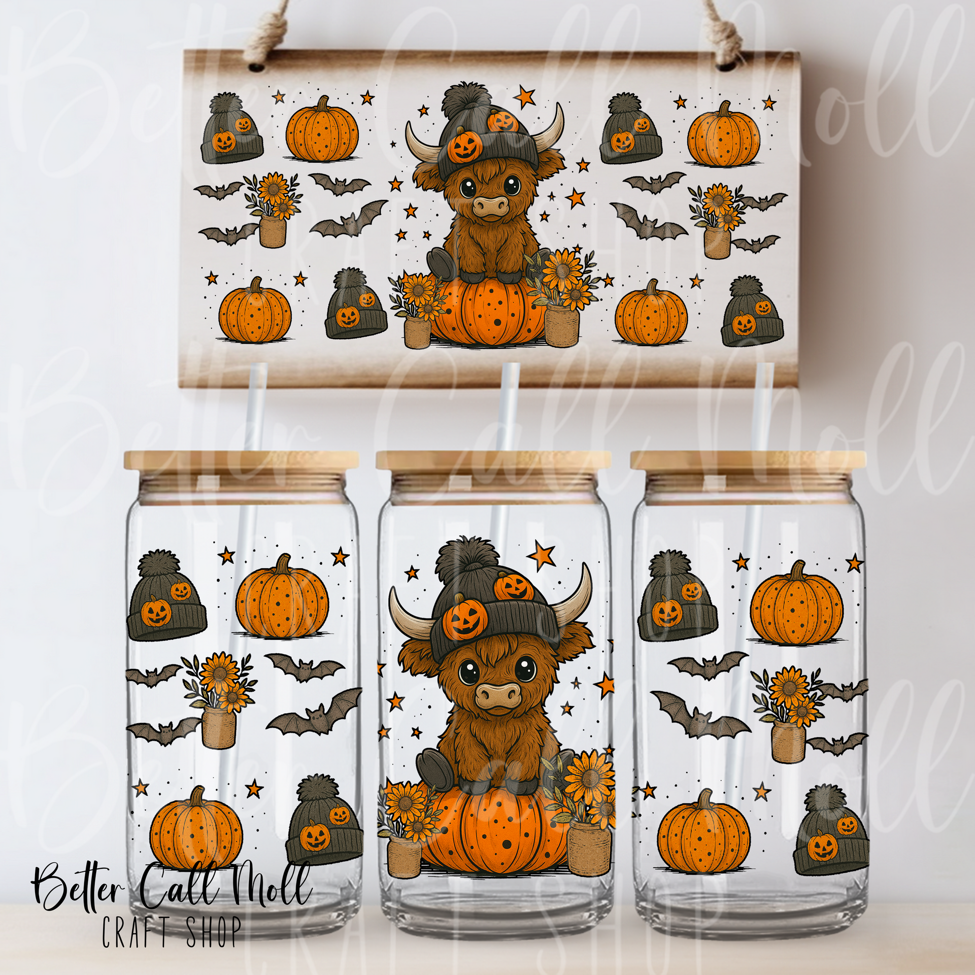 Halloween Highland Cow UV DTF 16oz Tumbler Wrap