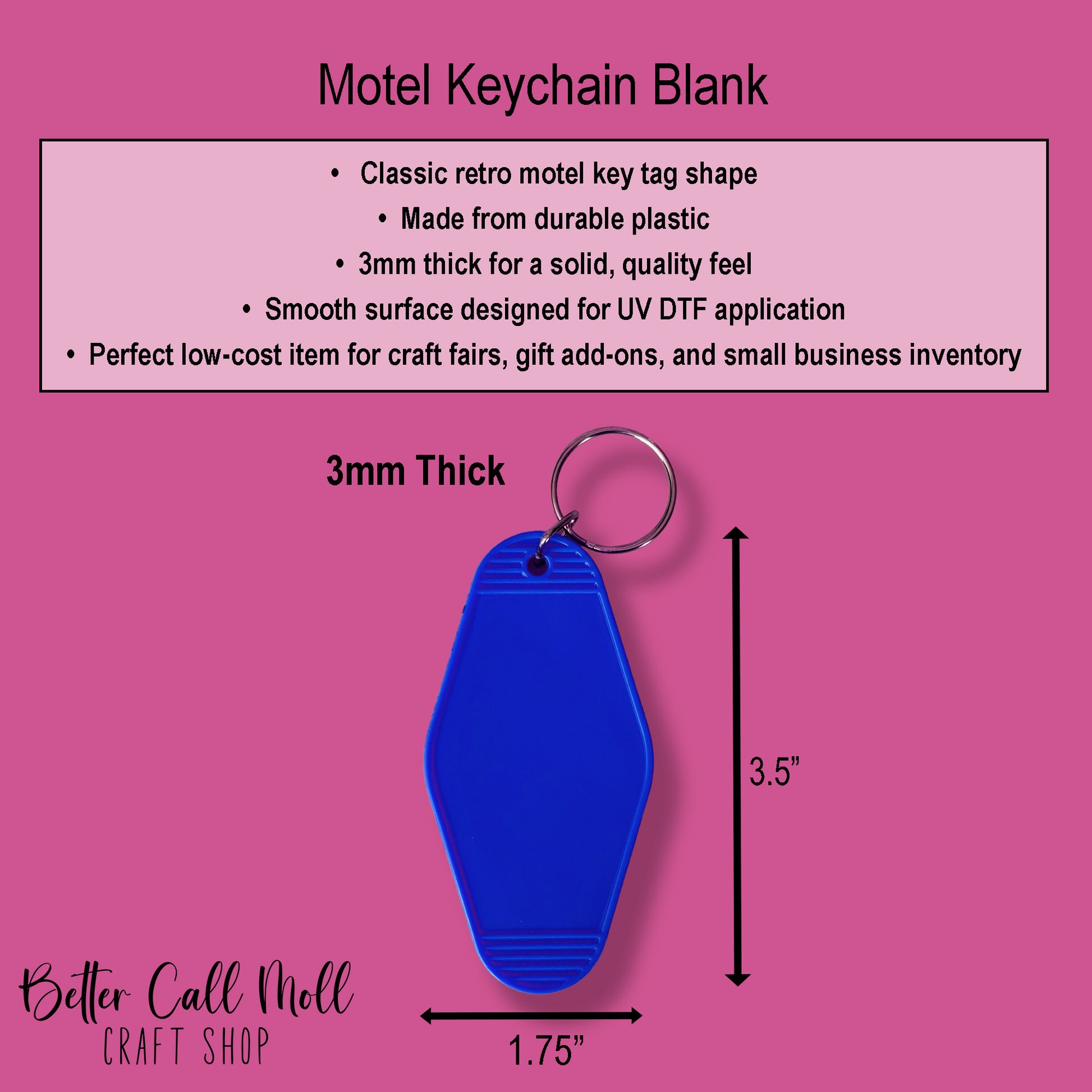 🔑 A retro classic made for fast, professional customization! Our Motel Keychain Blank is a sturdy plastic key tag with a smooth surface that’s perfect for UV DTF decals. This blank is ideal for personalized gifts, small business products, and quick-turn custom orders.