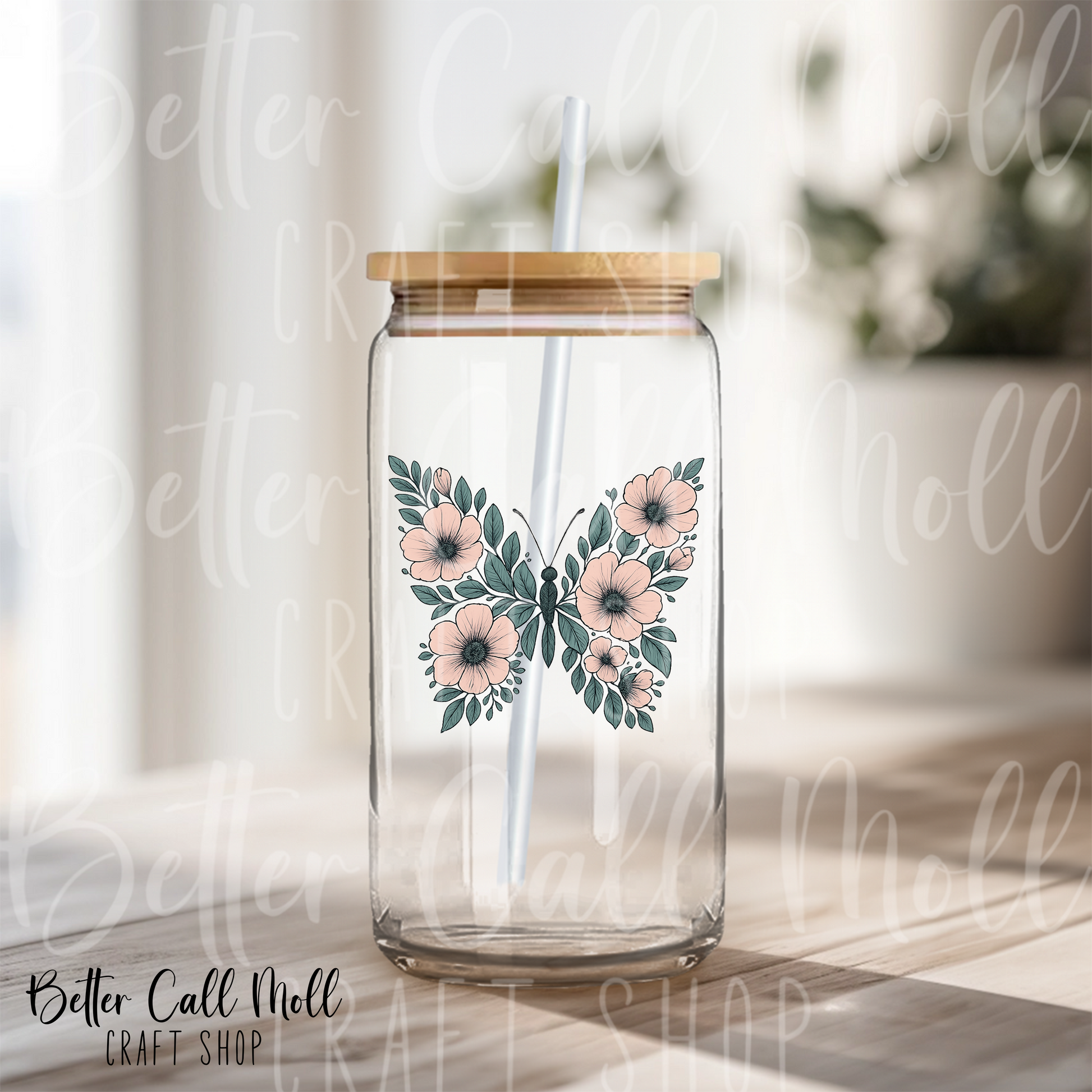 D207 - Pale Pink Floral Butterfly UV DTF Decal