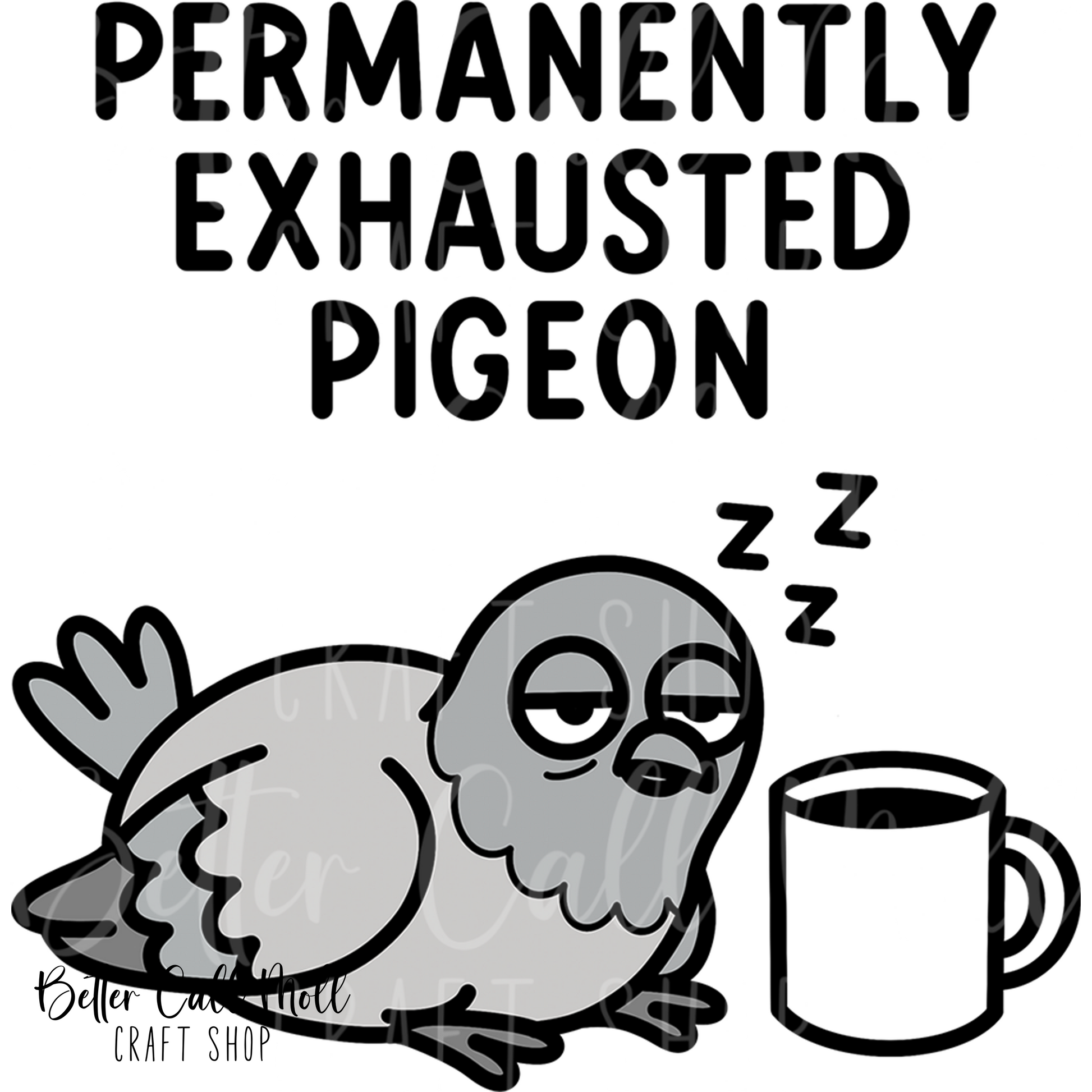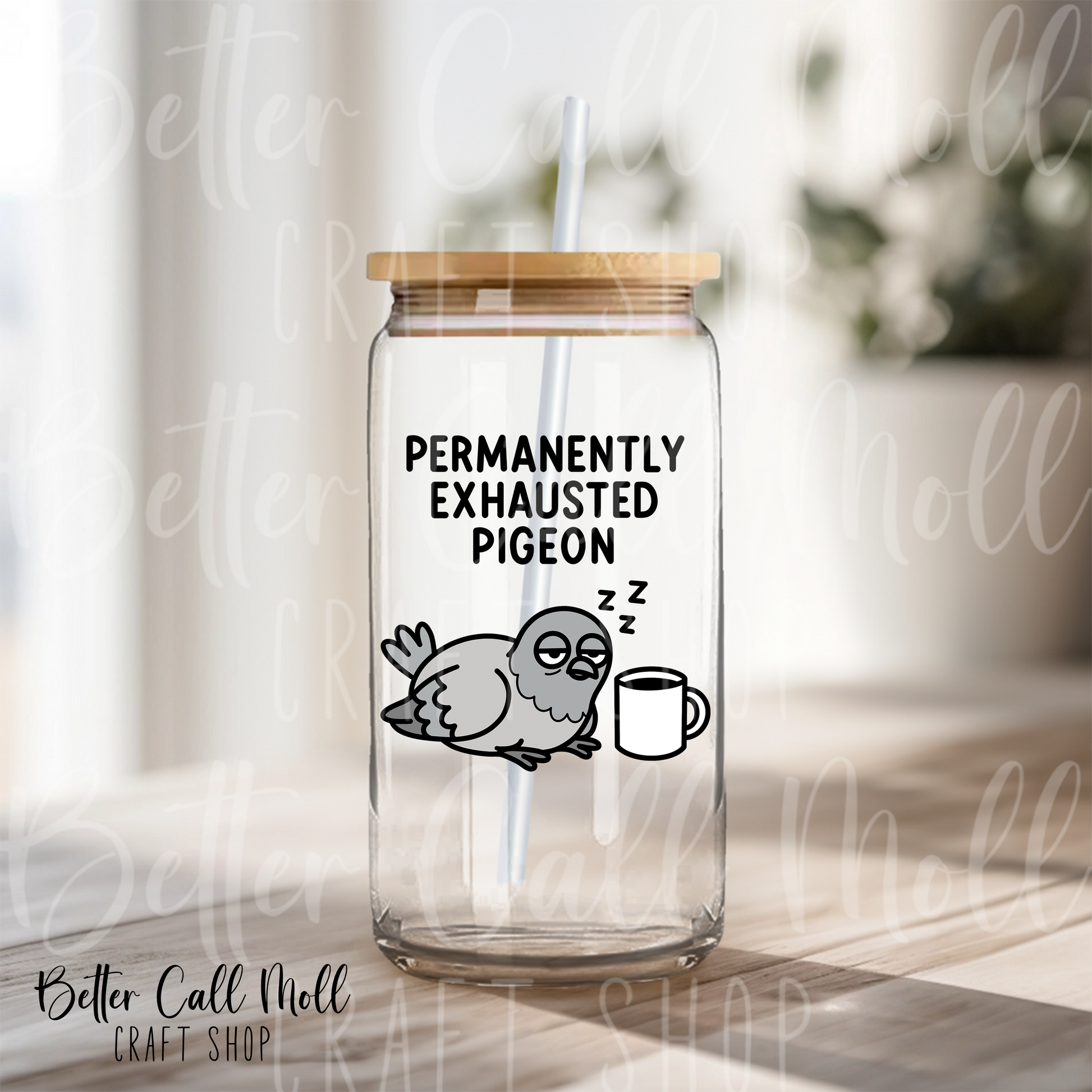 Permanently Exhausted Pigeon Coffee UV DTF Decal