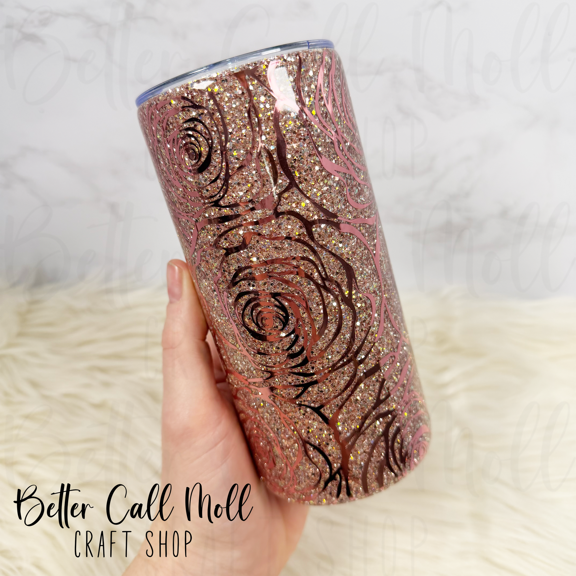 *PREORDER* Rose Outlines Rose Gold Glitter Insulated Stainless Steel Coated Tumbler