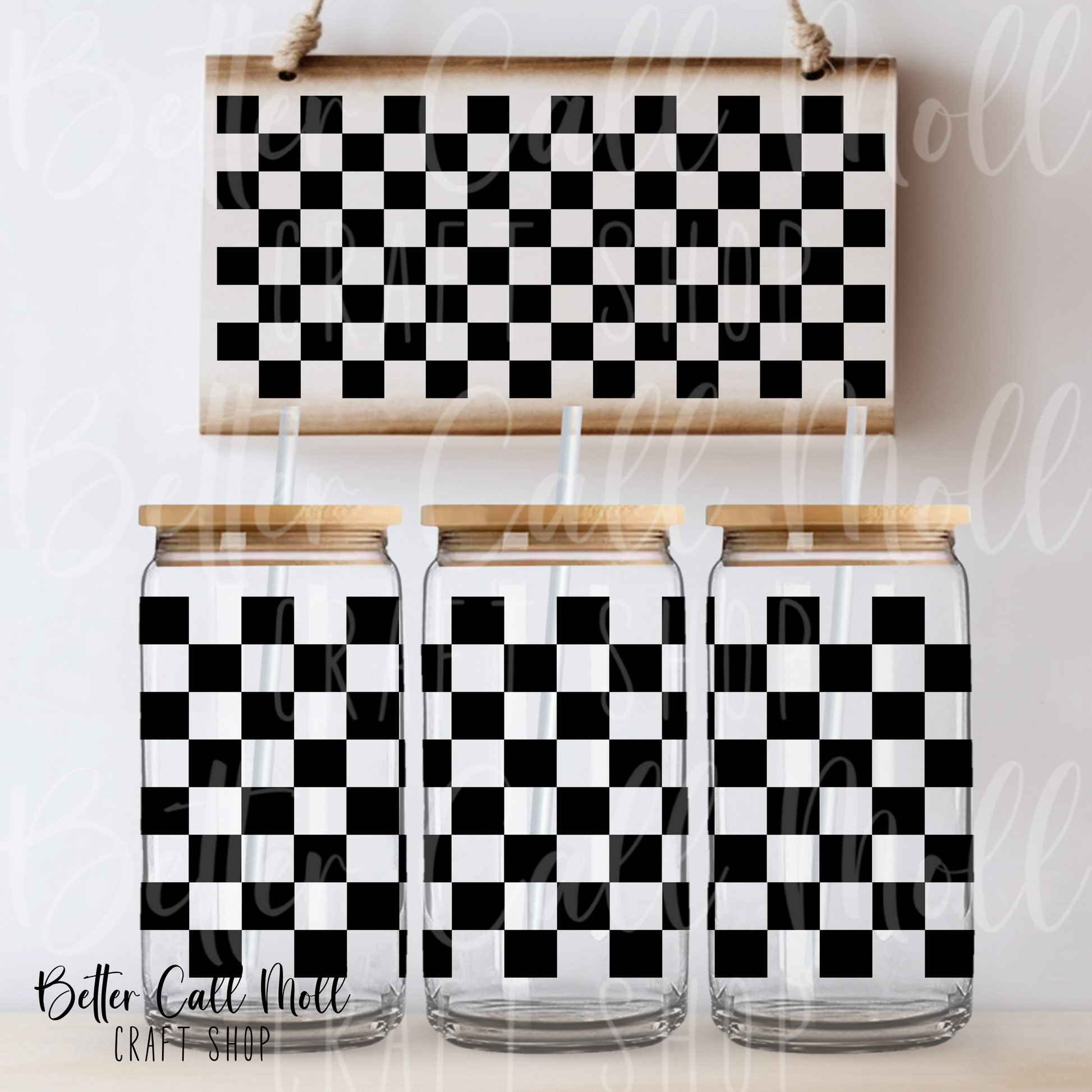 W019 - Black Checker UV DTF 16oz Tumbler Wrap