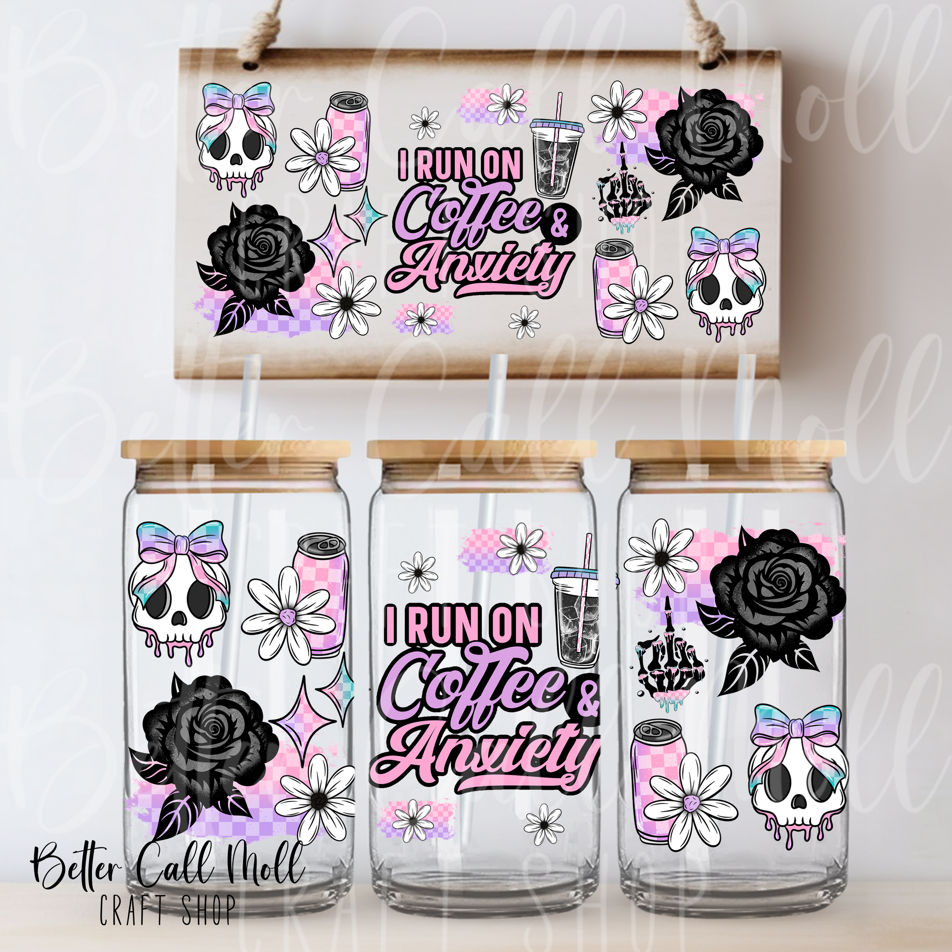 I Run On Coffee & Anxiety UV DTF 16oz Tumbler Wrap